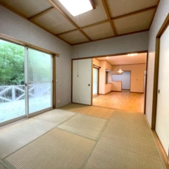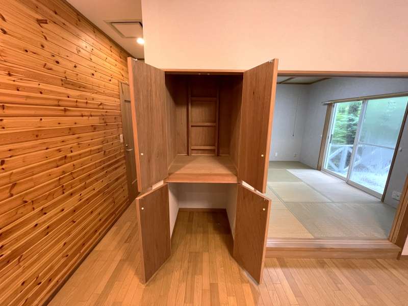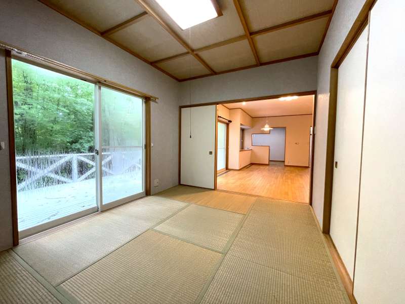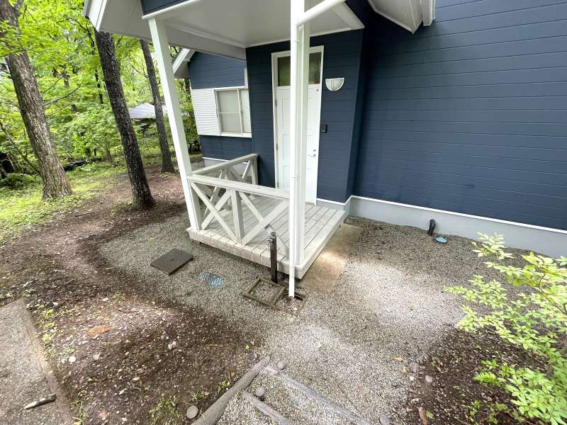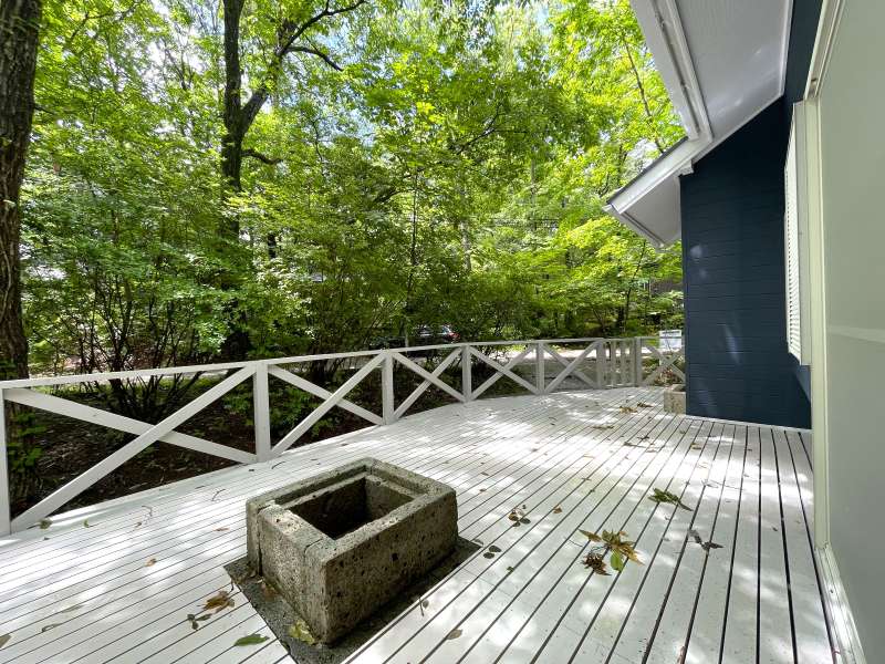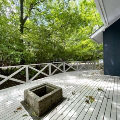 物件概要 | ウッドデッキテラスに大谷石のファイヤーピットを備えた特別な一邸です。よく整備されたエンゼルフォレスト那須内の静かな森に建つ、洋間と和室を備えた落ち着きのある別荘、2025年6月に内装リフォーム済みで、各部屋に収納もあり、別荘としてだけでなく定住にも対応できる設計となっています。約209坪の広い敷地と板張りの浴室外気浴テラスも備わっています。 エンゼルフォレスト那須 五峰平18222 |