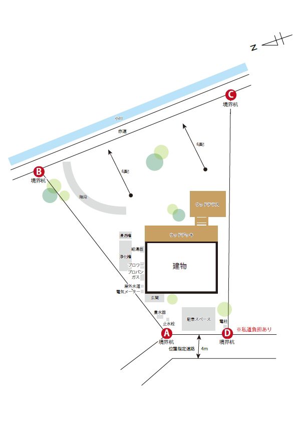 | 接面道路 | 西側幅員4m私道位置指定 |
