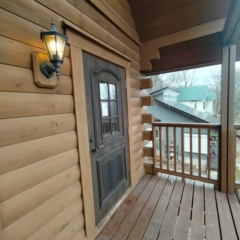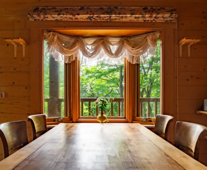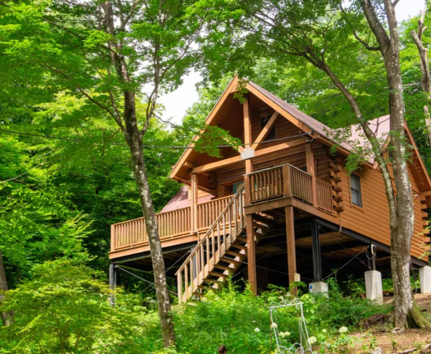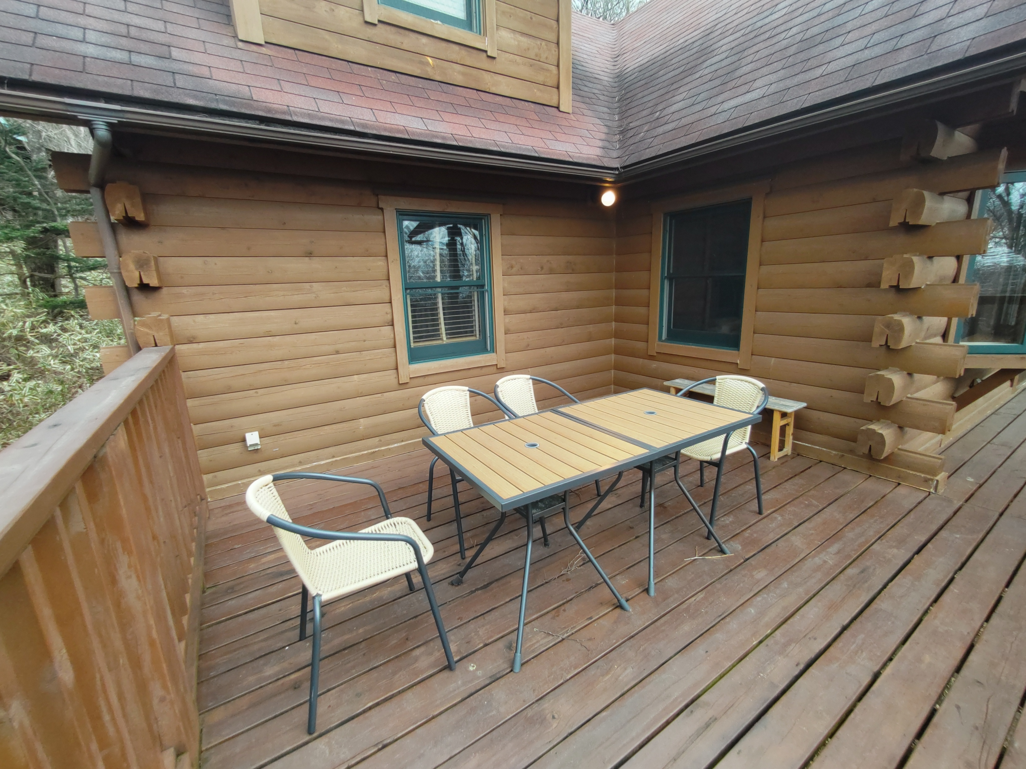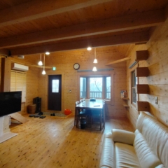 | 物件概要 | 天然木に囲まれるログハウスの魅力を味わえます。100㎡ある延べ床面積は居室もリビングも広く使えます。ウッドデッキテラスでテーブルを囲むこともできます。BBQやお食事などをガーデンエリアで楽しんで頂くことも。