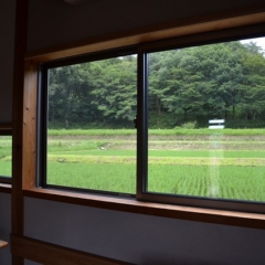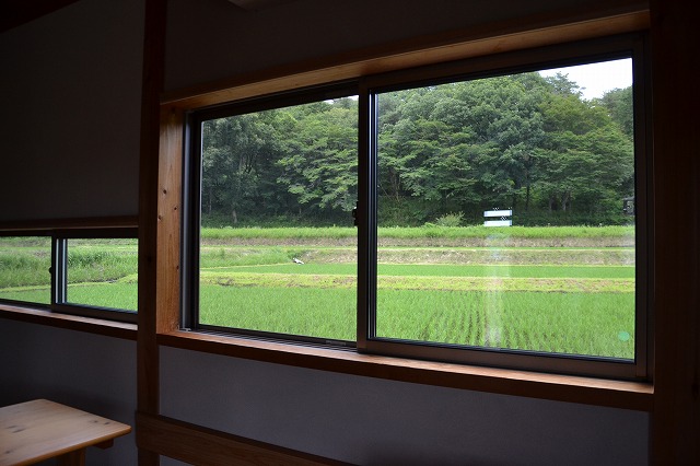 - リビングからヤマザクラと田の眺望が