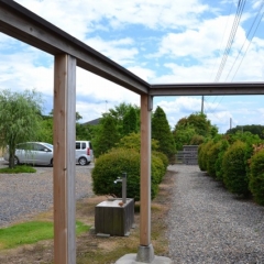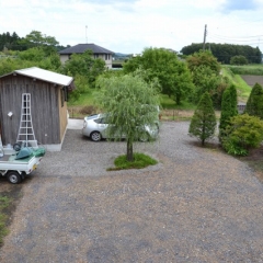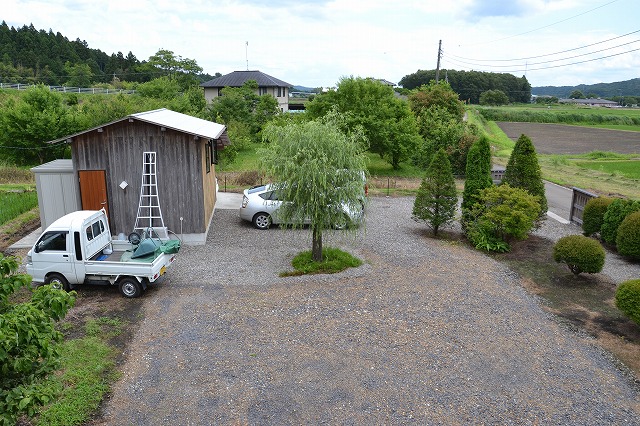 - 小屋は書斎的な離れになっています。この後ろに屋根付きカーポート。